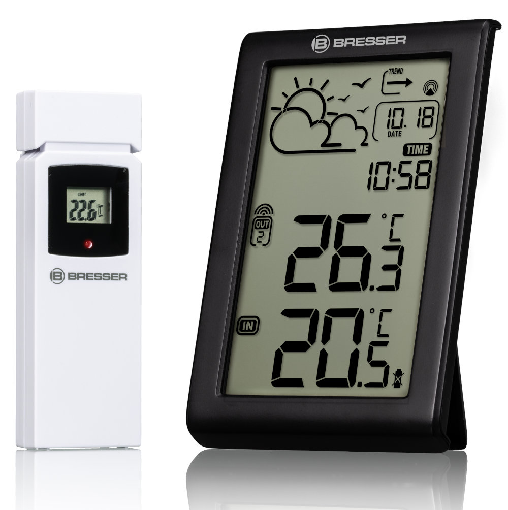 Bresser MeteoTemp W - to stacja pogodowa z dużym czytelnym monochromatycznym (czarno-białym) wyświetlaczem LCD, ma prognozę pogody i pomiar temperatury wewnętrznej i zewnętrznej. Jest także radiowo synchronizowany czas i data. Dzięki dużym cyfrom, temperaturę można odczytać nawet z dalszej odległości. Na MeteoTemp W trzeba wydać około 140 zł.