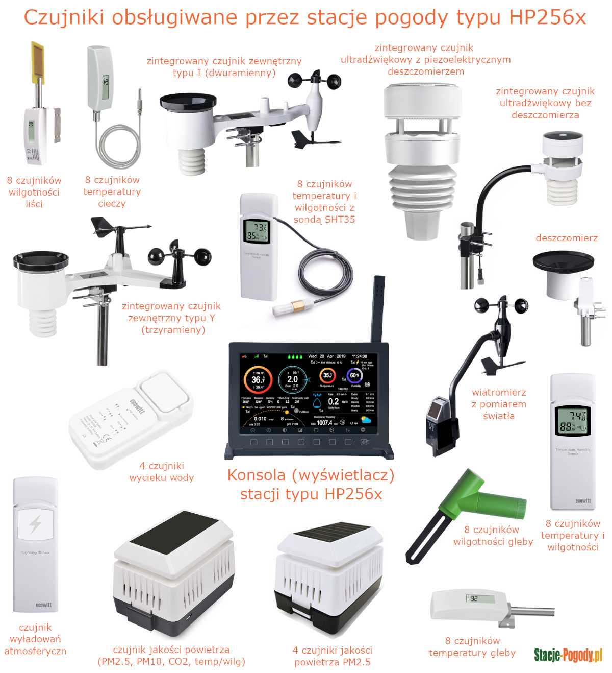 Konsola stacji HP256x obsługuje praktycznie identyczny zestaw czujników co HP255x, wyjątkiem jest brak obsługi czujnika wewnętrznego, który mierzył w HP255x temperaturę, wilgotność oraz ciśnienie powietrza w pomieszczeniu.