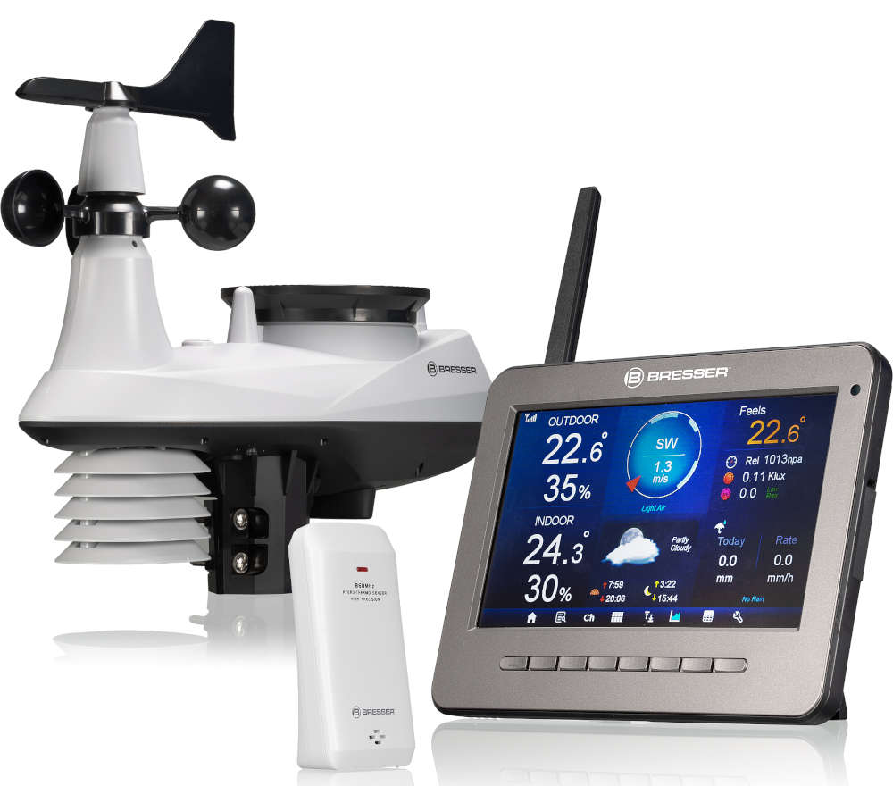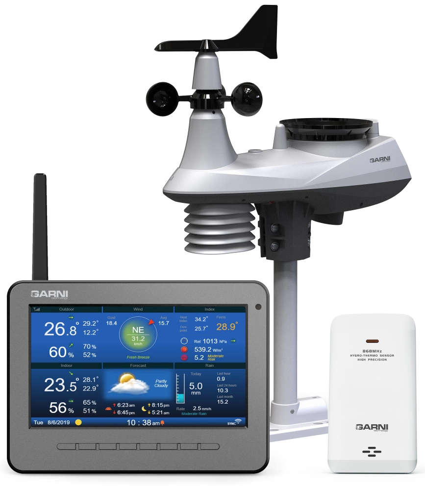 GARNI 3015 Arcus i Bresser WIFI HD (7003500) to funkcjonalnie identyczne stacje pogodowe z łącznością Wi-Fi, mogące przesyłać pomiary do serwisów pogodowych, takich jak np. Weather Underground. Wyposażone w atrakcyjne 7 calowe kolorowe wyświetlacze HD TFT i zintegrowane czujniki zewnętrzne (7w1) z FARS. Mogą nie tylko przesyłać dane do Internetu, ale mają także możliwość automatycznego zapisu danych w zewnętrznej pamięci flash (pendrive), podłączonej do portu USB.
