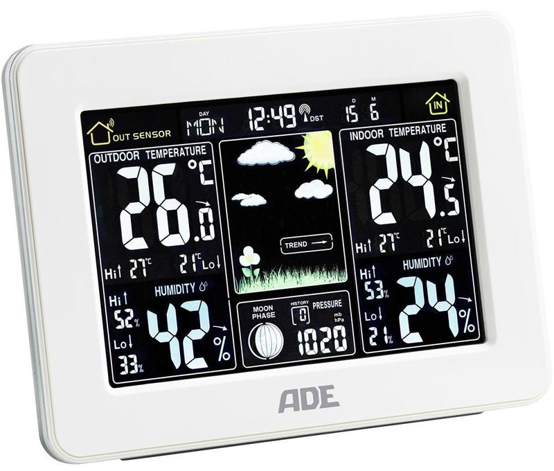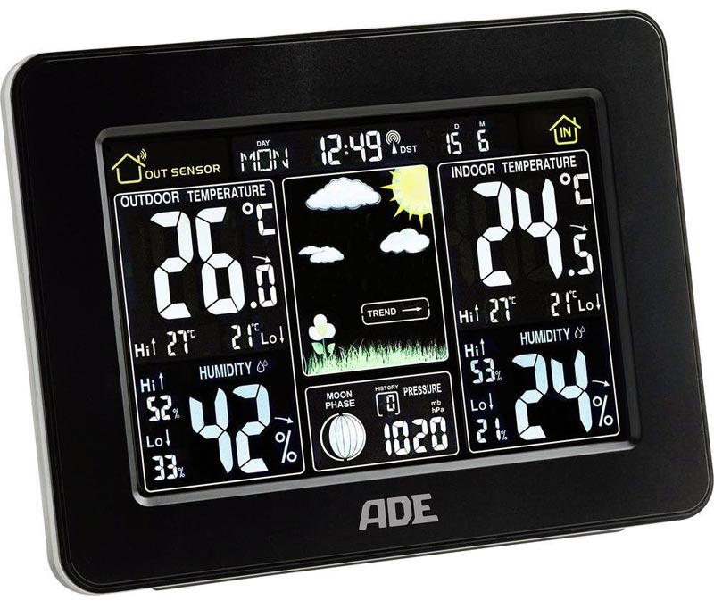 GreenBlue GB523 i ADE WS1502 (WS1503) to stacje pogodowe bardzo podobne do siebie. Oba produkty zostały wyposażone w duże czytelne kolorowe wyświetlacze LCD, na których znajdziemy informacje o prognozie pogody, temperaturze i wilgotności (wewnętrznej i zewnętrznej), ciśnieniu atmosferycznym oraz aktualnej fazie księżyca. Urządzenia posiadają także odbiornik sygnału DCF, dzięki czemu czas i data są ustawiane i korygowane automatycznie.