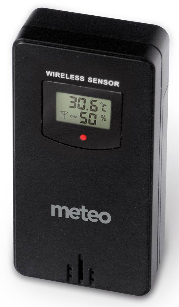 Czujnik zewnętrzny mierzy temperatury w zakresie od -20°C do +50°C, działa w paśmie 433 MHz i ma zasięg do 60 metrów (możliwy do uzyskania w idealnych warunkach, bez przeszkód terenowych i zakłóceń radiowych). Urządzenie może współpracować z maksymalnie 3 czujnikami temperatury i wilgotności, ale tylko jeden znajdziemy w zestawie.