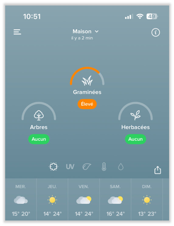 Nowa wersja umożliwia wyświetlanie informacji o promieniowaniu UV i nasłonecznieniu oraz stężeniu pyłków (drzew, traw i chwastów) w aplikacji mobilnej Netatmo Weather. Informacje te nie pochodzą z czujników stacji, ale są pobierane z sieci od partnera Netatmo - The Weather Company.