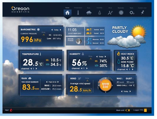 Patrząc na nowy produkt firmy Oregon, nie sposób się oprzeć wrażeniu, że może to być konkurencja dla Davis Vantage Pro2. WMR300 ma zasięg 300m, działa w paśmie 868Mhz i może współpracować z 12 czujnikami zewnętrznymi (w tym: 8 temp/wilg, 1 UV, 1 promieniowania słonecznego). Dane pogodowe są zapisywane w pamięci (do 341 dni, przy interwale co 15 minut), możemy je zgrać (przez USB) i analizować na PC.