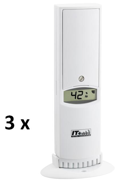 KLIMA@HOME (30.3060.01.IT) to stacja pogodowa, za pomocą której możemy mierzyć temperaturę i wilgotność w pomieszczeniu, w którym jest umieszczone urządzenie i trzech dodatkowych miejscach np. w pokoju dziecinnym, sypialni, w ogrodzie. Dzięki współpracy z Gateway WeatherHub, pomiary możemy przeglądać na smartfonie lub tablecie będąc w dowolnym miejscu na świecie. Ale aby mieć taką możliwość, będziemy musieli dokupić (za 240 zł) zestaw startowy WeatherHub.